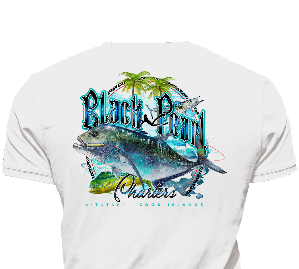 Outside the lagoon, deeper waters offer FAD fishing for wahoo, yellowfin tuna and mahi, and Captain Mike uses both trolling and innovative live bait methods to target these pelagic species. The Fishing is great year around, with the larger tuna (up to 100+ lbs) showing up December – March. Some of the most exciting fishing in Aitutaki is for Giant Trevally (GTs) which require heavyweight spinning gear to make long casts to GTs just outside the reef. Black Pearl also offers specialized jigging for dogtooth tuna and coral and coronation trout, as well as deep dropping with electric reels.